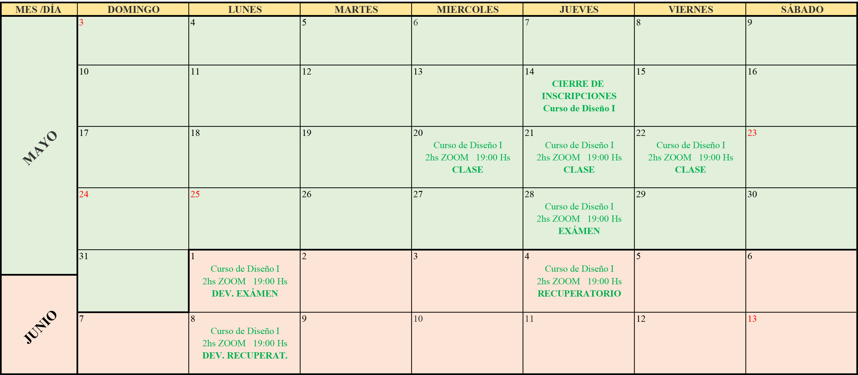 Diseño I: Cronograma 2026 (Sujeto a modificaciones)