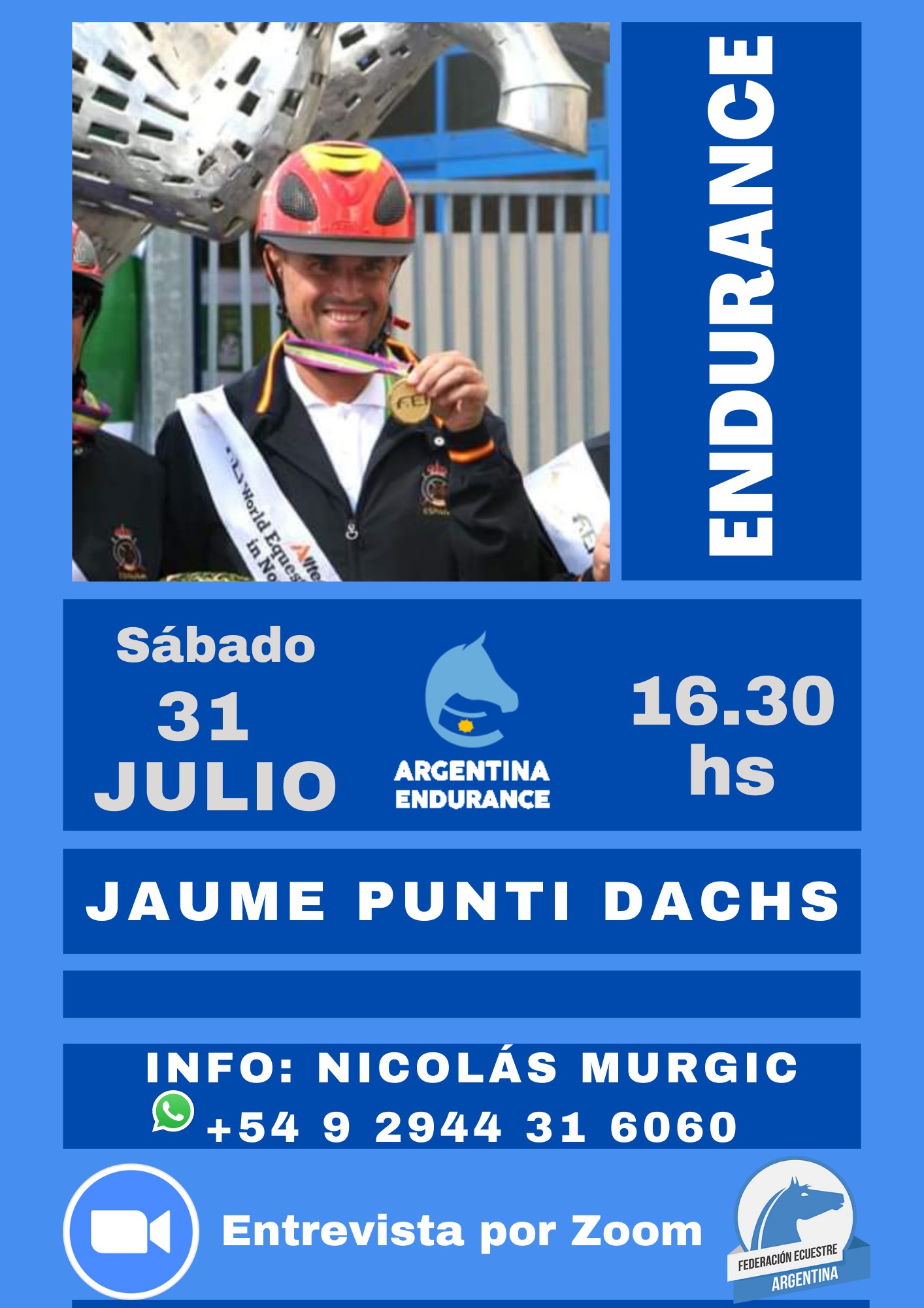 Julio, 2021 Zoom con Jaume Punti Dachs (Juma) - 31 de Julio a las 16:30 hs. 31Jul(Jul 31)4:30 pm(Jul 31)4:30 pmZoom con Jaume Punti Dachs (Juma) - 31 de Julio a las 16:30 hs.31 DE JULIO DE 2021 Detalles del evento Detalles del evento Hora(Sábado) 4:30 pm - 6:00 pm CalendarioGoogle Calendar